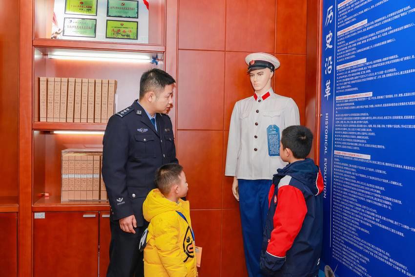 相较于硬核装备展示,警史馆里,时光仿佛在此回溯。从老一辈民警使用的手写档案,到不同时期的警服、荣誉勋章,一件件实物无声诉说着几代江夏公安人的坚守与荣光。玻璃展柜中,蒋仲超生前的警号和警礼服,更是让观众们深切感受到英雄精神的传承。“江城义警”代表颜军仔细聆听完讲解员的讲述后不禁感叹,江夏公安历史真的非常厚重。少年警队队员们在民警的帮助下轻轻触摸老式警服的帽徽,感受跨越时空的责任传承。