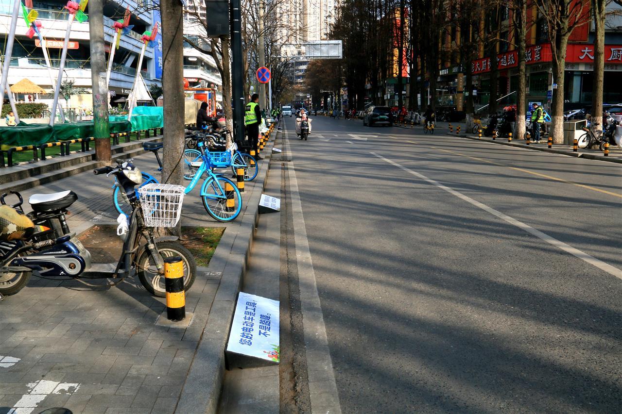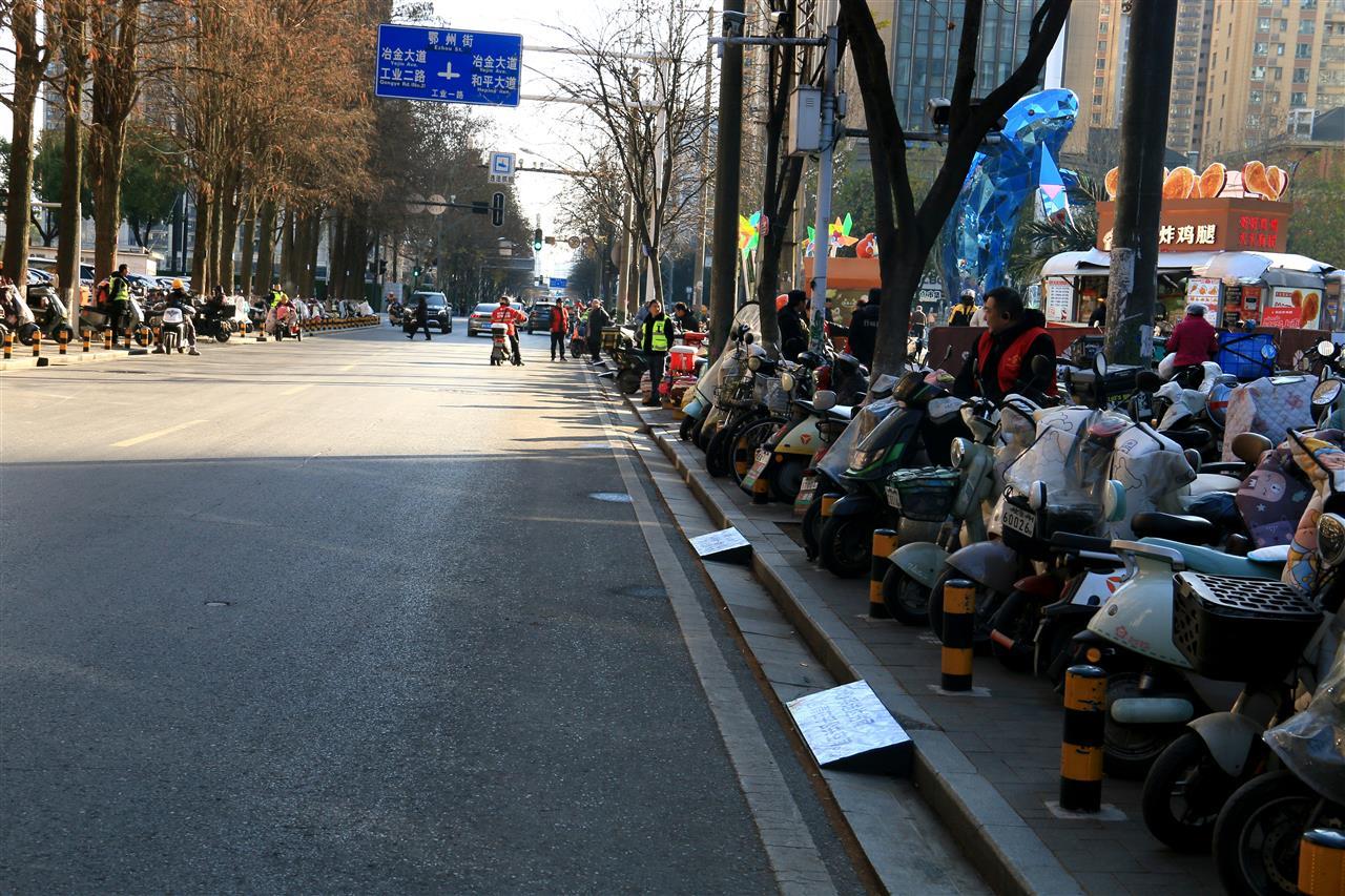 如今的工业一路,曾经的拥堵乱象消失,外卖骑手自觉将车辆整齐停放在非机动车道上的专属区域,取餐送餐高效有序;共享单车摆放规范,无过量堆积情况;机动车与非机动车各行其道,通行效率显著提升。