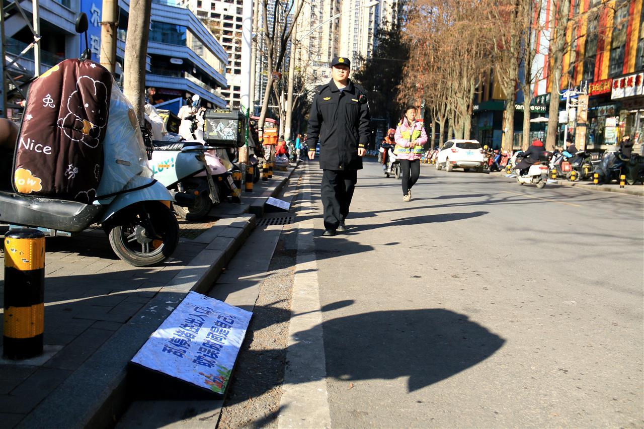 1月12日午餐时间,外卖骑手屈女士的电动车从青山城管铺设的坡道板上通过,顺利将车停放在青山区印象城商圈门口设置的外卖小哥专用停车区,随后快速跑向一家餐饮店取餐,几分钟后,她发动电动车,驶向点餐客户的家中。此时,家住附近的李女士从容走过商圈门前时感慨不已:拥堵乱象得到治理,回家真的是方便多了。