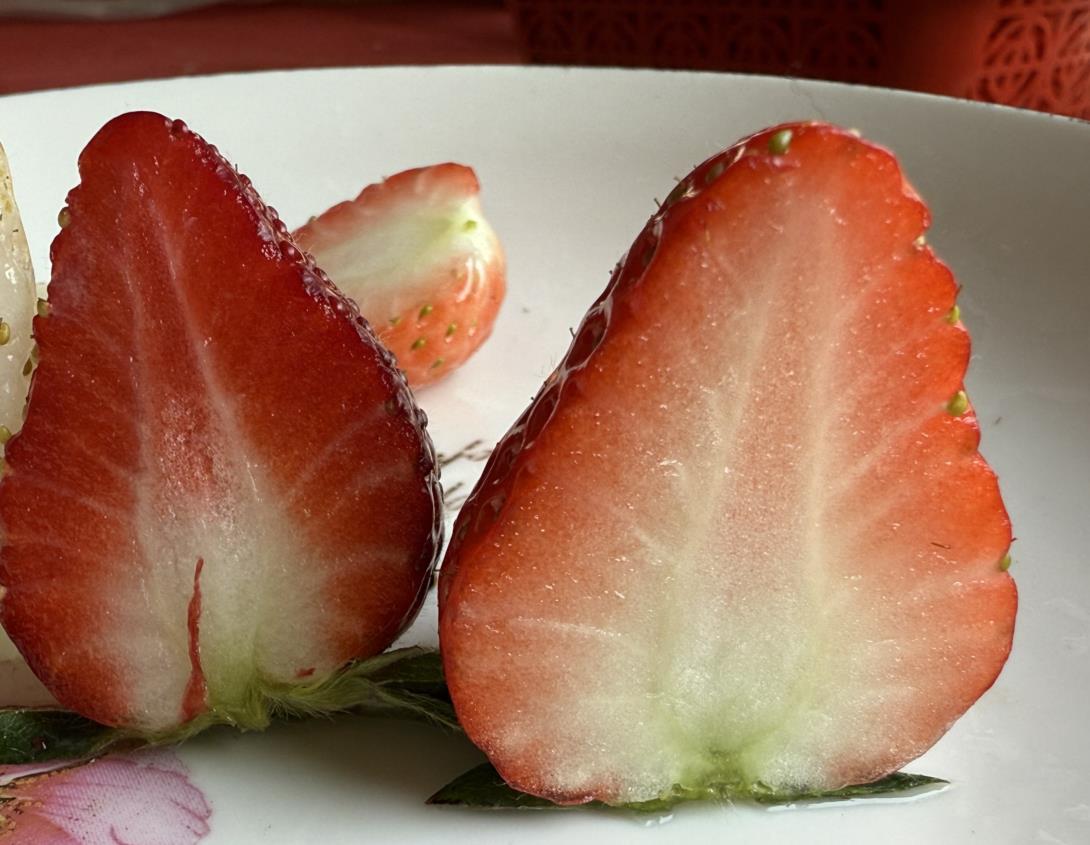 记者品尝后感受到,黑珍珠果肉绵密、甜度高,犹如果冻般饱满;建德白露则汁水充沛、清香满口;红颜草莓甜味鲜明、果肉紧实。