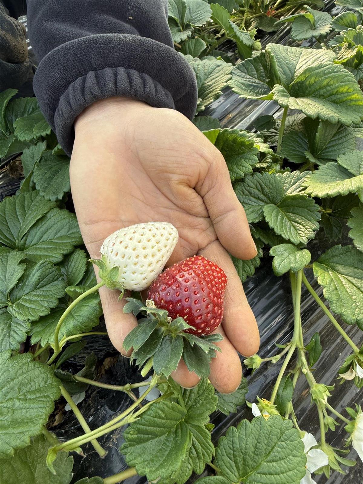 东西湖区农业技术推广中心负责人黎兰献介绍,白草莓主要品种包括天使八号、淡雪、白雪公主等;黑草莓则有黑珍珠、真红美铃、黑色撒旦等。黑草莓的深色源于其富含的花青素和类黄酮,抗氧化功能突出;白草莓则拥有独特的果香,口感清甜。因其外观别致、风味独特,丰富了本地果园的品种结构,满足消费者对品种多样性和高品质的需求;但由于种植技术要求高、产量相对较低,其价格通常是普通红草莓的数倍甚至数十倍。