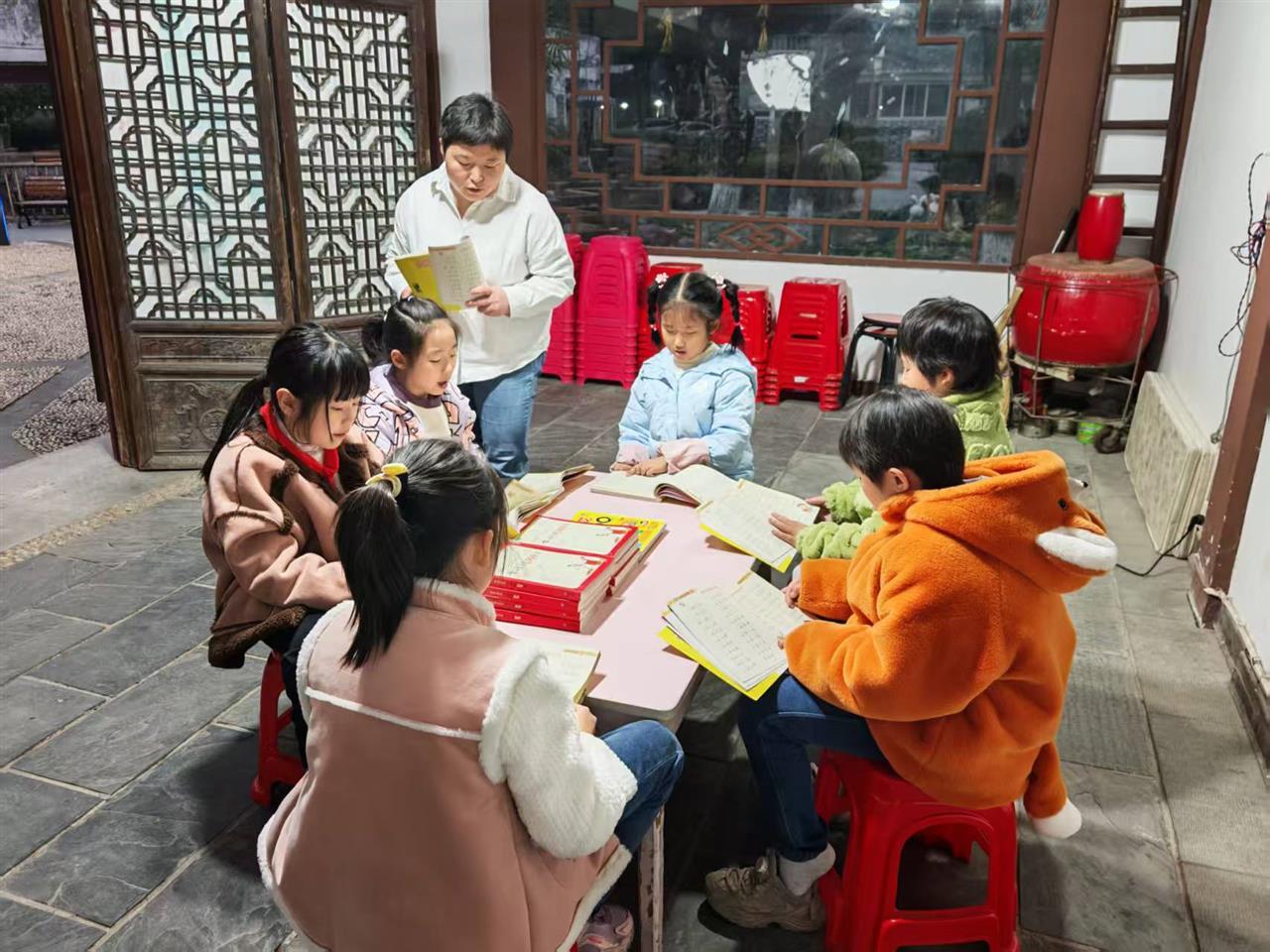 每天清晨半小时,梁芳芳精心准备带拼音的古诗、成语和三字经。“我们重点在打好基础。”她说,“从一年级到六年级的孩子都能找到适合的内容。”这种混龄共读的模式意外激发了孩子们的学习热情——年纪小的努力跟上,年纪大的主动领读,互相促进的暖流在清晨静静流淌。