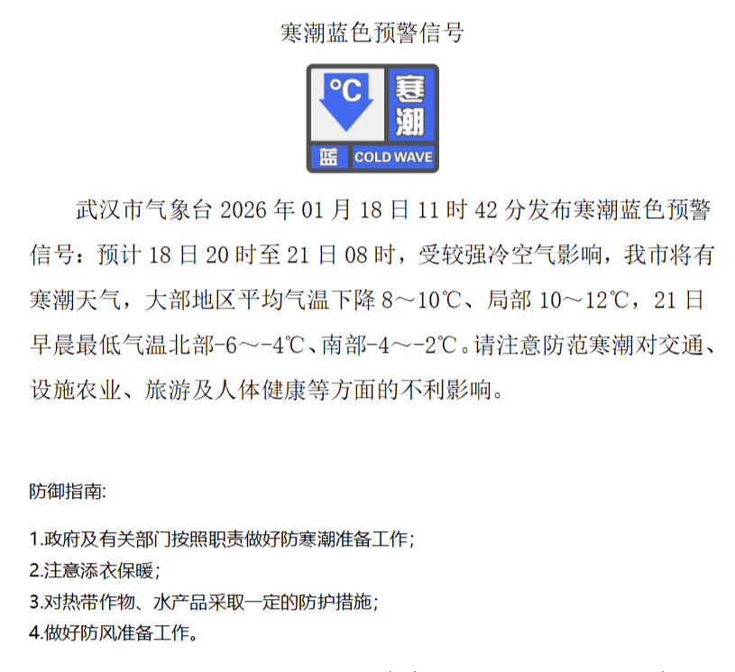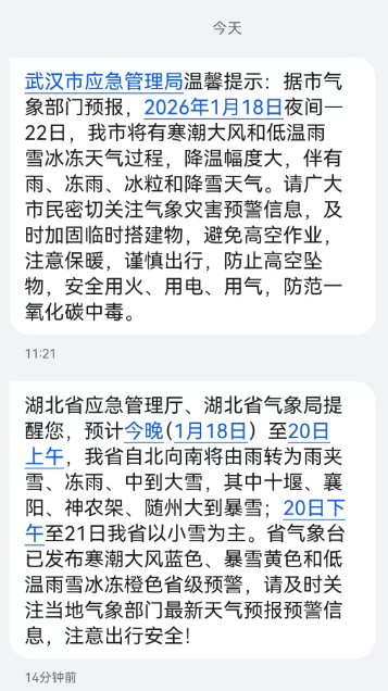 江岸区城管执法局相关负责人介绍,根据气象预警信息,江岸区城管、环卫部门将于1月19日前后正式启动融雪防冻应急预案,并依据雪情变化动态调整响应等级。