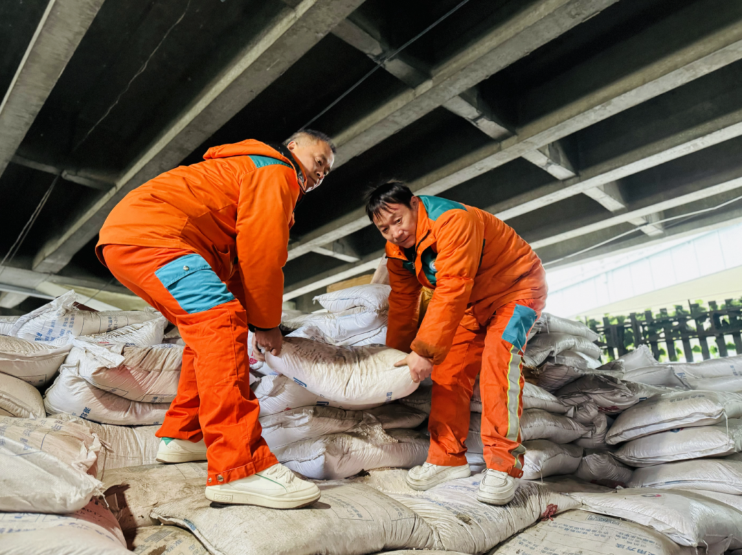在江岸区融雪防冻应急中心,工作人员正加紧清点和归集各类防雪应急物资。目前,江岸环卫部门已储备融雪剂790吨、草垫与麻袋12000个、人工除雪铲900余把。所有物资均实现分类存放、专人管理,确保关键时刻调得出、用得上。