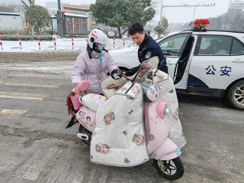 路面上的温情时刻也在不断上演。藏龙岛派出所民警王千升在出警途中看到一名骑电动车的市民滑倒,立即停车飞奔上前搀扶,仔细检查确认无碍后,耐心叮嘱:“电动车稳定性差,尽量步行更安全。”在积雪最深的国省道路段,民警们采取“铲雪撒盐 + 合力推车”模式,一次次弯腰推车的身影成为雪地里的动人风景。据统计,整个早高峰期间,江夏交警累计帮助80余辆被困车辆的司机推车。