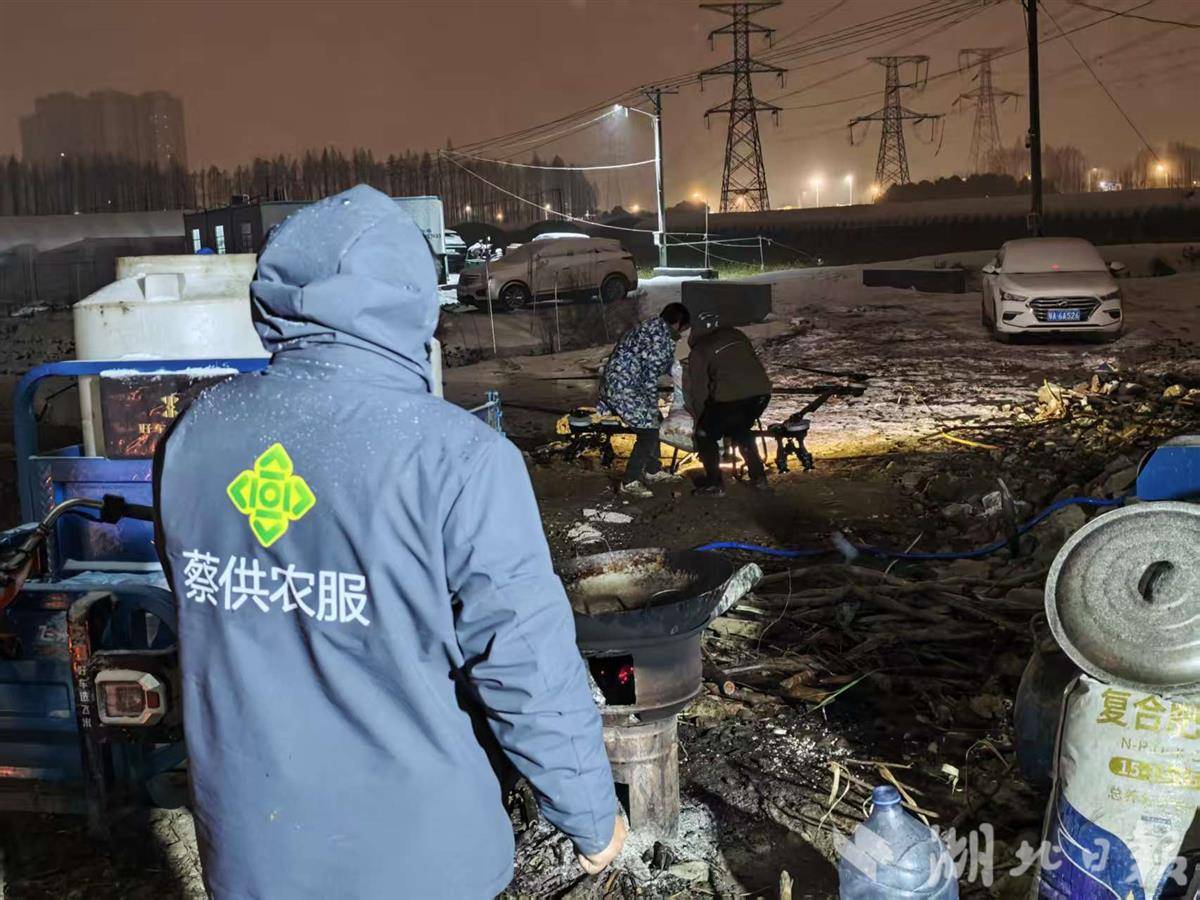 “1月20日凌晨接到紧急求助电话,立刻驱车赶往东西湖区。”武汉蔡供现代农业服务有限公司负责人肖凡介绍,位于东西湖区,武汉裕丰农业发展有限公司100亩的蔬菜大棚,因积雪岌岌可危。凌晨施救作业时气温骤降,有些融雪剂结块,无人机很难抛撒出去。工作人员临时架起铁锅炉灶,将除雪剂兑水加温融化后灌进无人机的料斗,播撒水剂,加速冰雪融化。“2台无人机忙到清晨。”