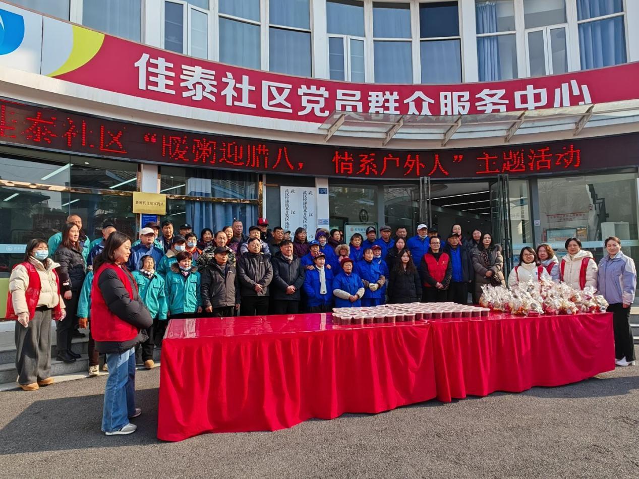 1月23日,在腊八节来临之际,武汉经济技术开发区沌阳街道佳泰社区以“暖粥迎腊八,情系户外人”为主题,开展特色关爱活动,为辖区环卫工人、快递员、外卖骑手、出租车司机等户外工作者送上精心熬制的腊八粥及节日祝福,传递社区温暖,彰显基层治理的为民初心。