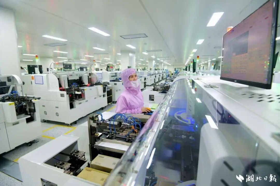通城县安芯美科技(湖北)有限公司车间内,员工正在封测电子元器件。(湖北日报通讯员 刘建平 摄)