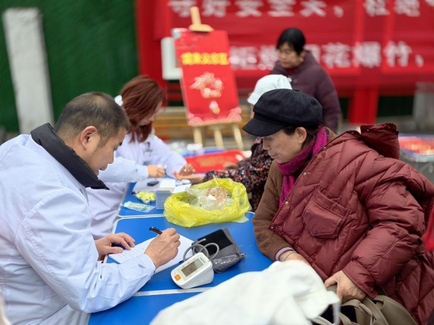 便民暖心不缺位,服务群众零距离。社区链接沌阳卫生院开设义诊专区,医护人员耐心为居民量血糖测血压、讲解常见病预防和用药知识,细致解答老年病、慢性病调理疑问,用专业守护居民健康。一旁的便民服务区内,免费磨刀、洗鞋、缝纫、公益理发等活动有序开展,理发师娴熟修剪发型,磨刀师傅认真打磨刀具,点滴行动传递社区温情,彰显了社区“佳家美”党建品牌“服务佳、风尚佳”的核心内涵。