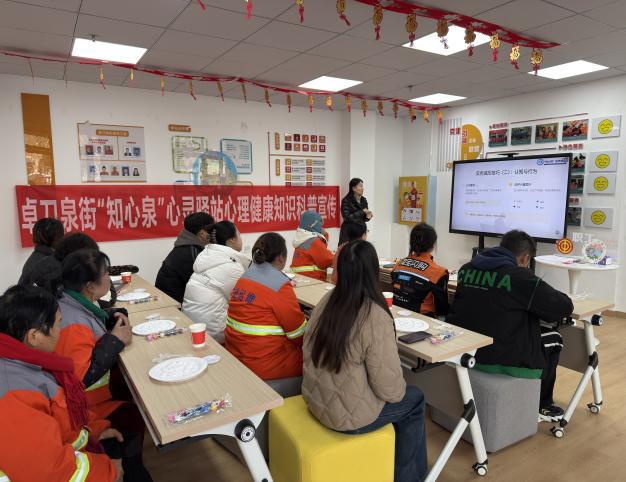 活动伊始,卓刀泉街道“知心泉”心灵驿站邀请专业心理咨询师为大家带来心理健康知识科普。她系统讲解了压力的双重影响,引导新业态群体及户外工作者识别生理、情绪、行为及认知上的压力信号,减少对心理问题的污名化认识。通过正念呼吸和压力源自我探索等互动练习,引导大家正向表达内心感受,在沉浸式体验中汲取满满“心能量”。