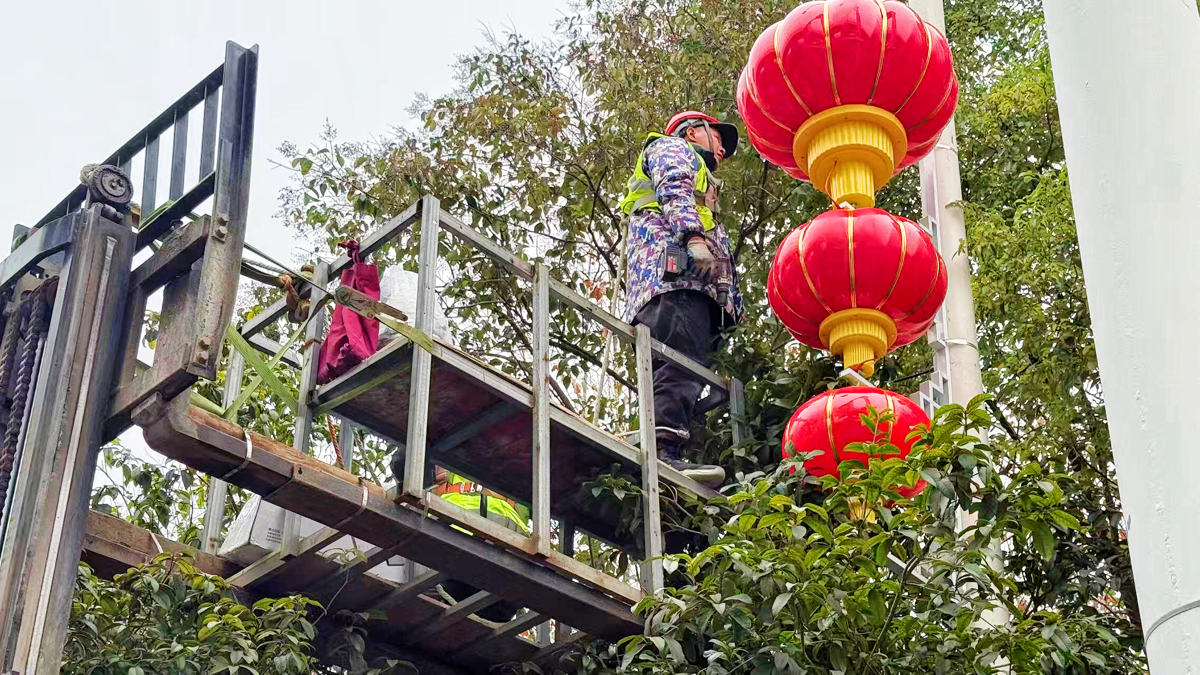 据介绍,硚口区目前辖区主干道灯笼悬挂、绿植布设、夜景调试等工作已全面提速推进,确保辖区市容环境品质、节日景观效果达到最佳状态,迎接新春佳节到来。