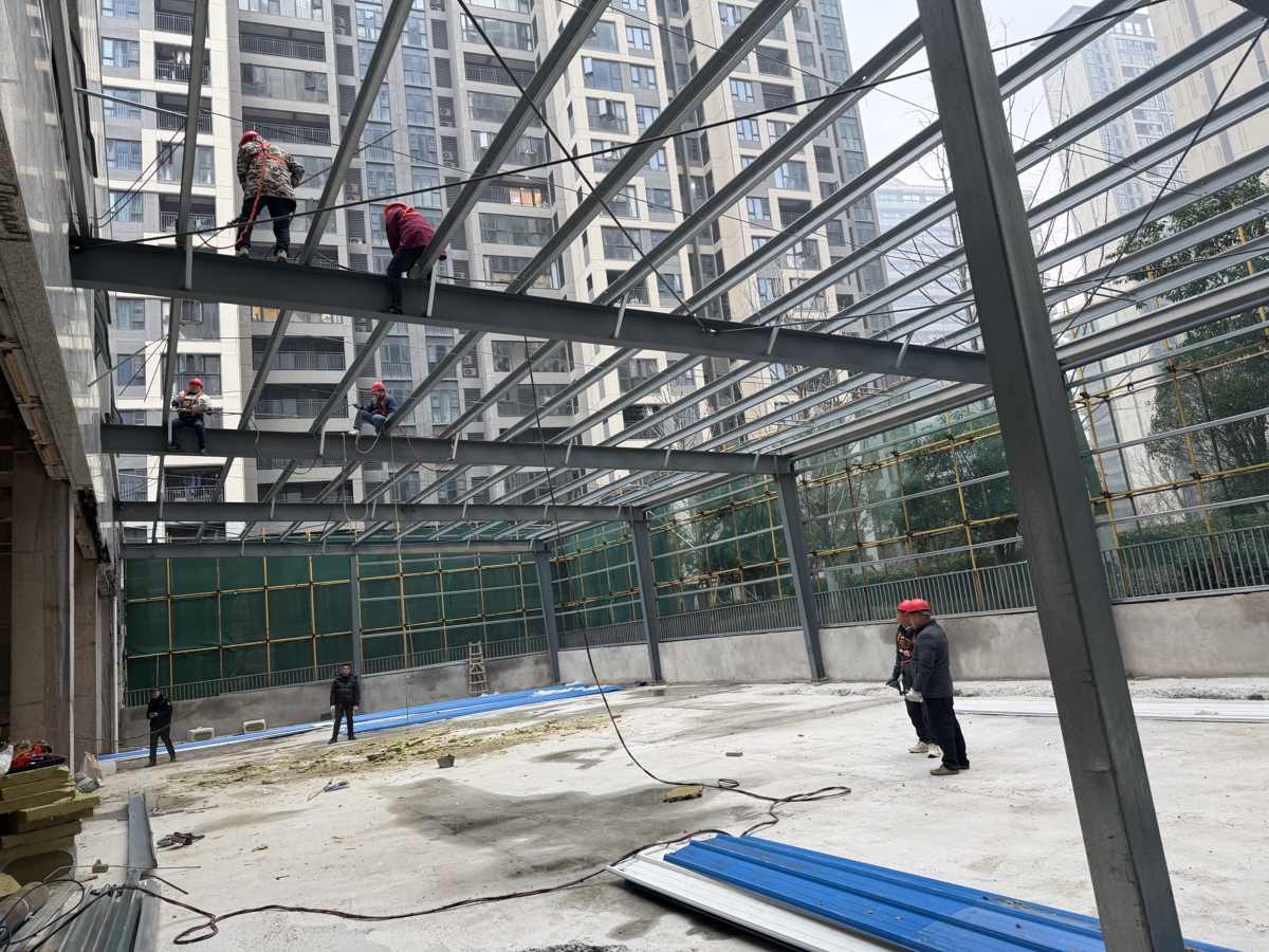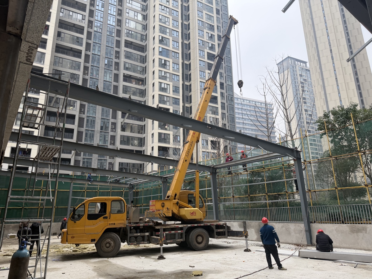 2025年7月10日,蔡甸区城市管理综合执法大队中法生态城中队在日常巡查中发现,一售楼部内正在搭建钢结构。经查,该处建设未取得《建设工程规划许可证》,搭建行为涉嫌违法,该违法钢结构构筑物长35米、宽14米、高6米,占地面积达490平方米,违法占用公共空间,不仅直接侵害了小区业主的合法权益,其违规搭建的钢结构也存在潜在安全隐患。执法人员当即依法下达《责令停止建设决定书》,并将该点位纳入重点监管范围。
