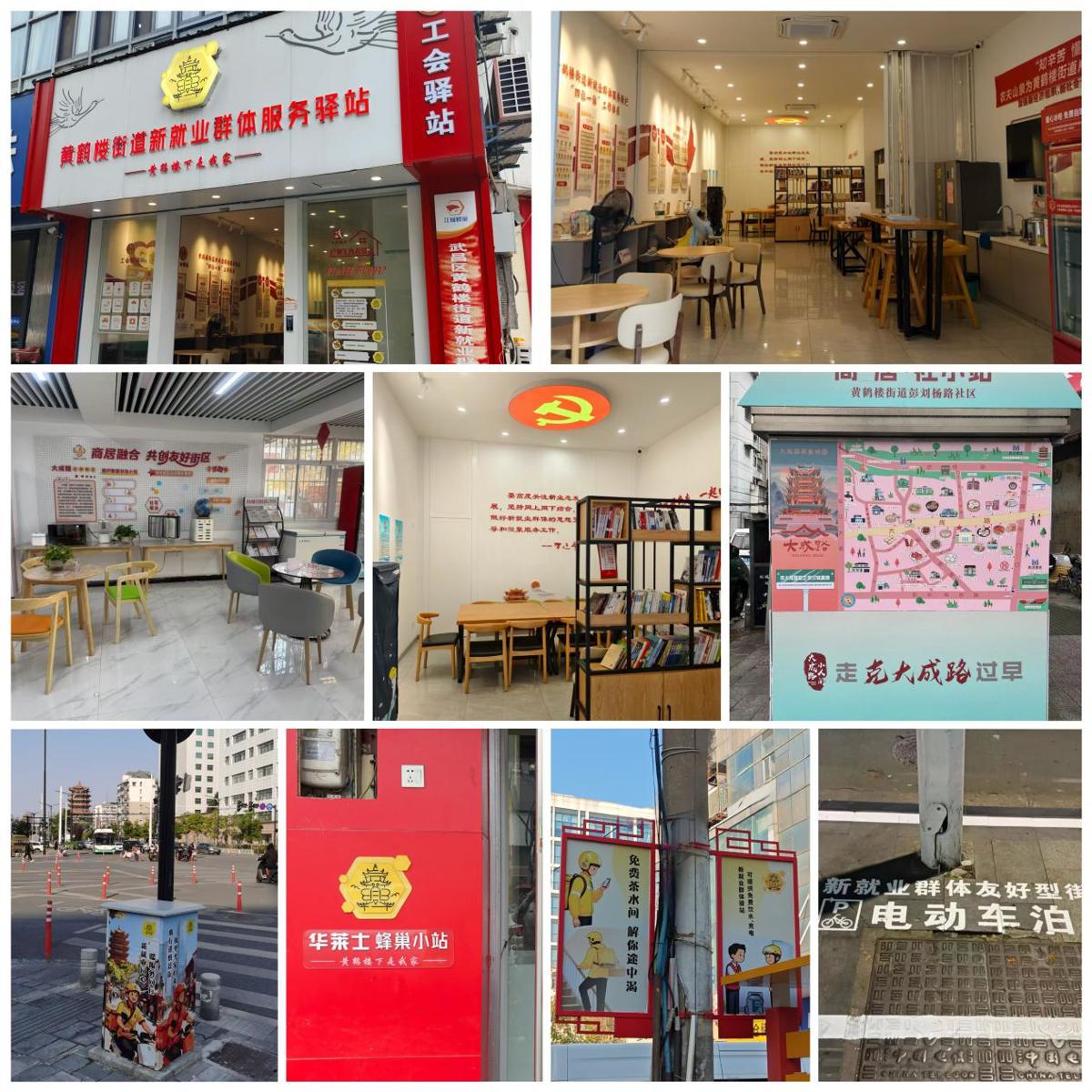 针对街区新就业群体吃饭、饮水、休息、如厕等实际困难,创新打造“1+2+N”三级服务矩阵。1个中心站点功能齐全。在4个社区交界的商业与人流密集区域,建成黄鹤楼街道新就业群体服务中心驿站,配备休息区、阅读角、会议空间、健康检测设备等,街道人员每日轮流值守,律师每周四下沉提供法律咨询服务,切实把服务“做进去”,让驿站“活起来”。2个分站点特色鲜明。建成2处“江城驿站”分站,彭刘杨路分站配备洗衣机、烘干机、共享浴室等,成为“身体加油站”。读书社区分站常态化开展文化学习及子女关怀活动,成为“精神充电站”。N个小站点灵活补充。联合17家爱心商户设立“小站”,统一标识,提供饮水、充电、短暂休息等高频基础服务,精准对接骑手“急停急走”的工作节奏。