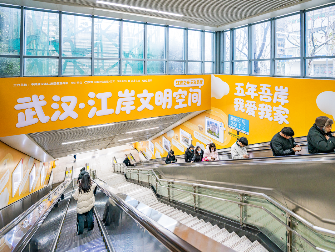 近日,“五年吾岸 我爱我家——武汉·江岸文明空间”在三阳路地铁站焕新揭幕。