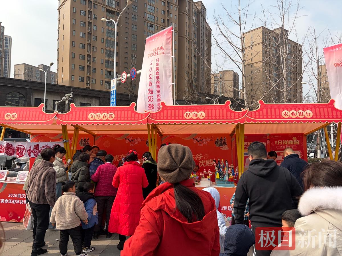 上午10时许,极目新闻记者现场看到,不少市民来到军山新城车都春台里,捏面人、义写春联、剪纸、爆米花、烤肠等展位吸引市民驻足围观。来自军山街的李先生表示,得知今天有这样的活动,专门带着家人来到现场,感受浓浓的年味。