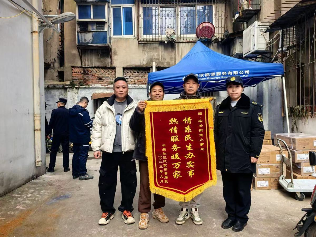 2月7日,武汉市硚口区宗关街道申新社区汽配宿舍28户居民迎来喜事,困扰多年的“用气难”问题彻底破解,家家户户用上清洁、安全、便捷的天然气。居民代表送锦旗向街道办事处表达谢意。