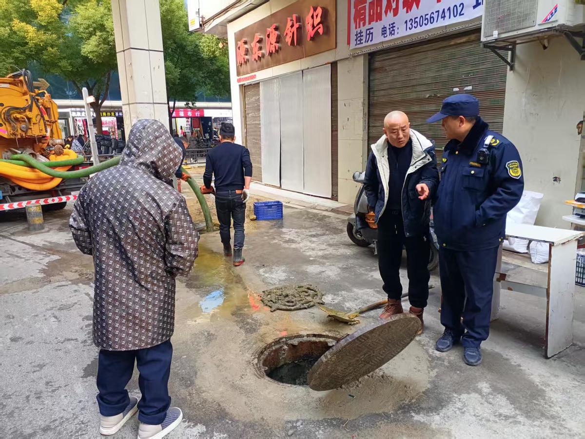 此前,永茂社区居民反映下水管道严重堵塞,污水外溢,污染路面,影响正常出行。汉正街道相关部门立即赶赴现场勘察。经查,堵塞原因为井内油污板结,加之老旧小区改造时管道合并施工遗留问题,疏通难度较大。由于该管道位于市场内两座商城之间,两座商城物业管理方因权责不清而相互推诿,导致堵塞问题没有从速得到解决。