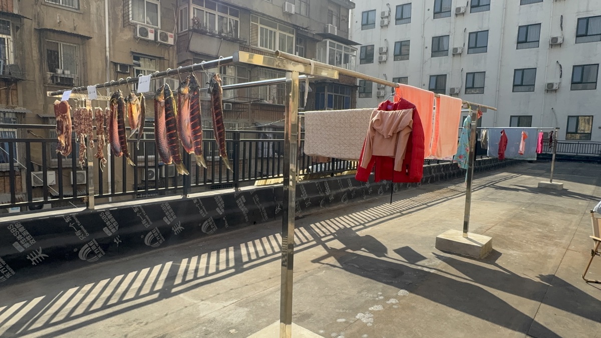 2月8日,是这个“便民晾晒场”开张的首日,只见上面晾晒着各种腊货。宝地社区书记袁智芳说,露台上晒的除本小区居民的腊货外,还有一些是隔壁小区居民的。