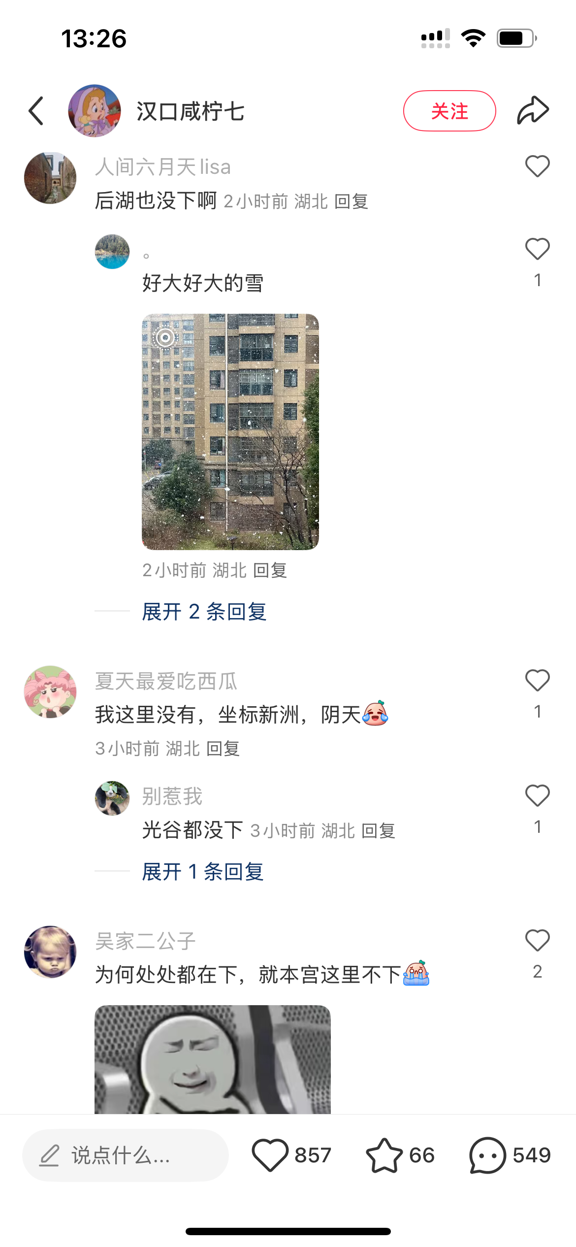 那么,今天武汉到底哪几个区飘雪了呢?未来天气如何?