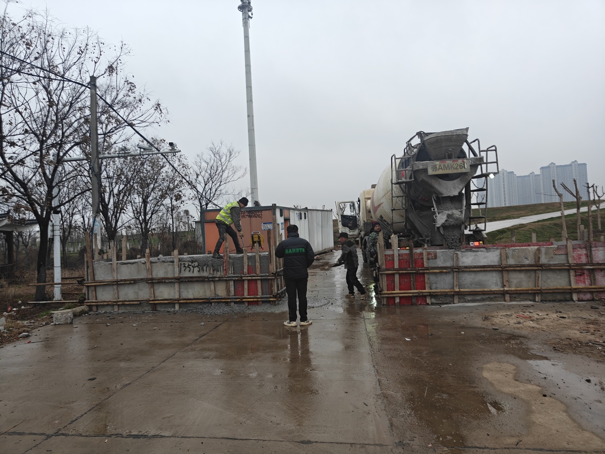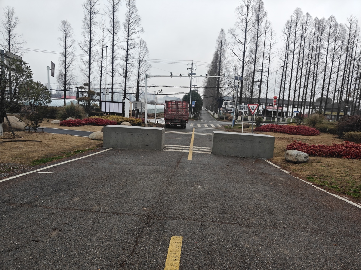 当行驶至通达路与汉江堤路交汇处时,记者发现有施工人员正在现场作业。下车询问后得知,施工人员正在此处浇筑混凝土墩,道路上已浇筑完成2个混凝土墩,每块长约3米、高1米,两墩之间的间距约2米。“浇筑这些混凝土墩,目的是控制大车和载重车辆驶上汉江堤,家用车通行不受影响。”施工人员向记者介绍。