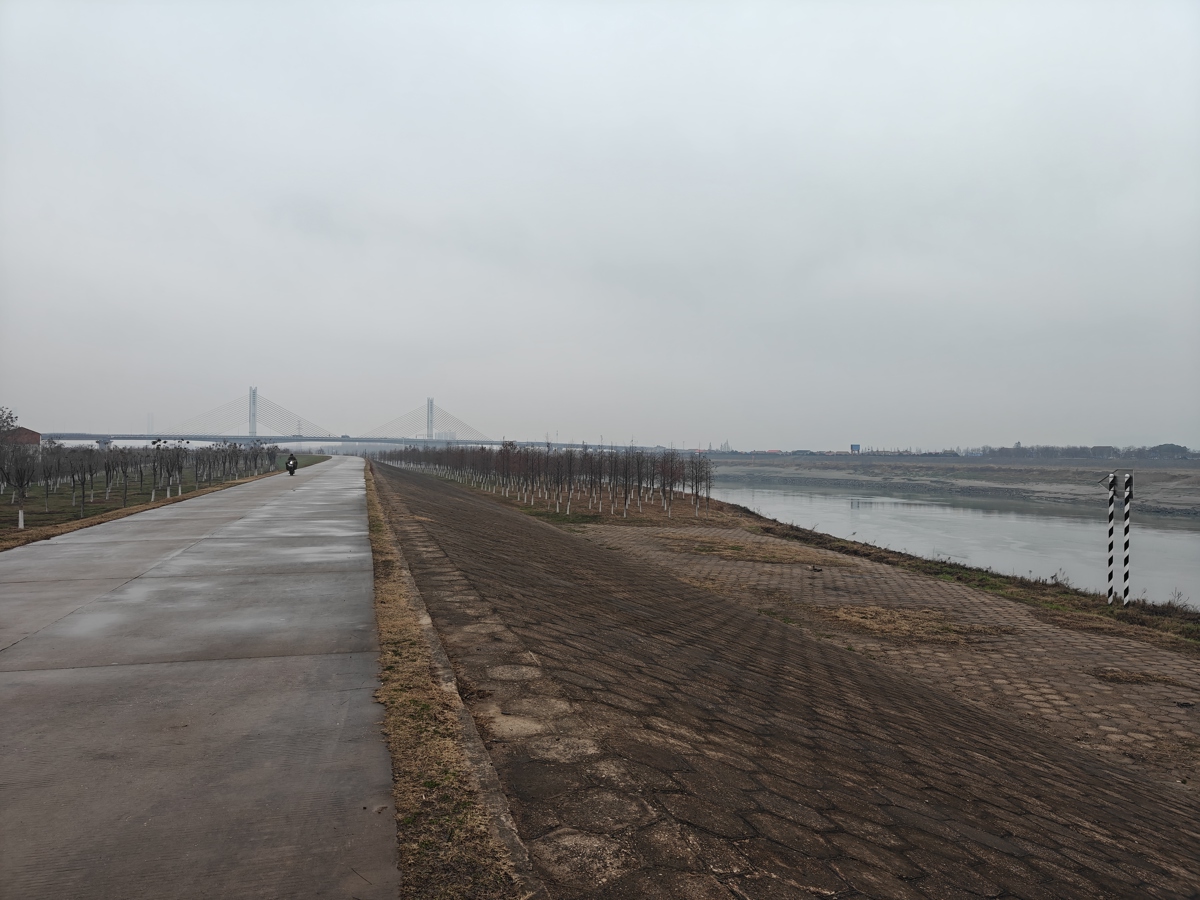 随后,记者驱车向慈惠村方向行驶,双车道的汉江堤路依堤顶而建、蜿蜒向前,串联起一江冬日美景:江边的水杉挺拔直立、排列成行,枝干疏朗苍劲,与江水相映成趣;堤内则有彩叶点缀其间,虽值寒冬,却尽显“四季皆景”的韵味,构成了一幅静谧优美的冬日滨水画卷。