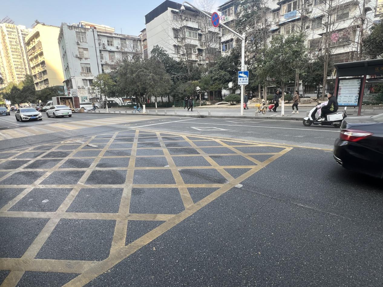 在蔡甸区莲花湖大道与茂盛路交叉口,市民朱女士的日常通勤有了新变化。“现在比以前过街效率高多了,秩序更好也更安全了。”让她感到安心的,是路口新增的非机动车专用等候区、清晰的信号灯,以及那条为她这样左转骑行族节省下约40米距离的切弯导流线。
