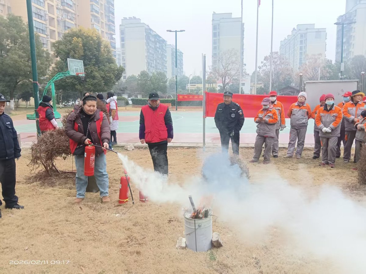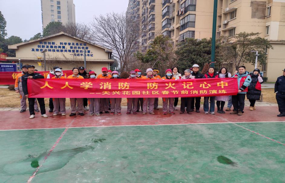 为新春佳节将至,为切实做好春节期间消防安全工作,有效提升社区居民及物业工作人员的消防安全意识和应急处置能力,坚决防范各类火灾事故发生,营造安全、祥和的节日氛围,2月11日上午,武汉长江新区天兴花园社区联合辖区物业服务中心开展春节前消防安全演练活动,社区工作人员、物业安保、保洁及居民代表等共计60余人参与。
