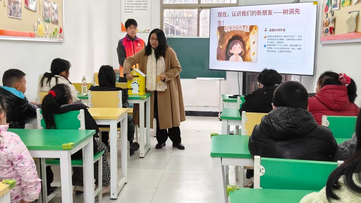 活动在一场趣味十足的小故事中拉开了序幕。志愿者化身“树洞守护者”,用温柔的语气,向孩子们介绍这位特殊的“新伙伴”:“它不说话,却能认真倾听每一份心声;它不张扬,却能守住每一个小秘密。学习上的困惑、对爸爸妈妈的思念、不敢告诉别人的小愿望,都可以写在纸上,轻轻放进树洞里,每月月底,‘树洞’都会给大家回信哦。”