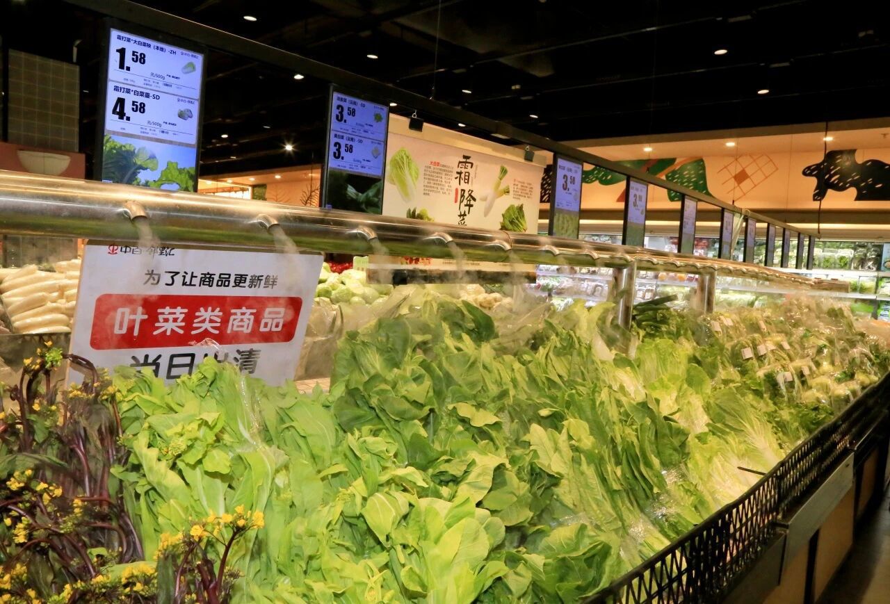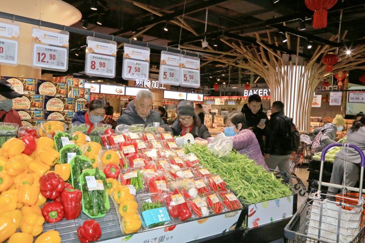 在中百·邻里汇(南湖店),店内节日氛围浓厚,生鲜区商品丰富、陈列整齐。店长介绍,为应对春节采购高峰,门店已提前加大备货力度,重点民生商品库存较平日翻番。自腊月二十日起,超市迎来采购热潮,为此专门推出包菜、白萝卜、土豆、莴苣等系列平价蔬菜,切实让利于民。