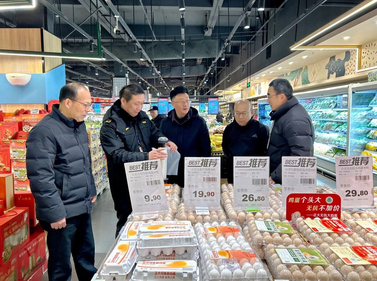 2月9日,武汉市洪山区发展和改革局、区市场监督管理局、区商务局组成联合检查组,赴中百·邻里汇(南湖店)、南湖综合生鲜市场、悦活里生活广场(广宏汇商业街店)等重点民生商品供应场所,对粮、油、肉、蛋、菜、鱼等商品的储备、供应及价格情况进行实地检查,确保春节期间市场供应充足、价格平稳,保障市民安心过年。