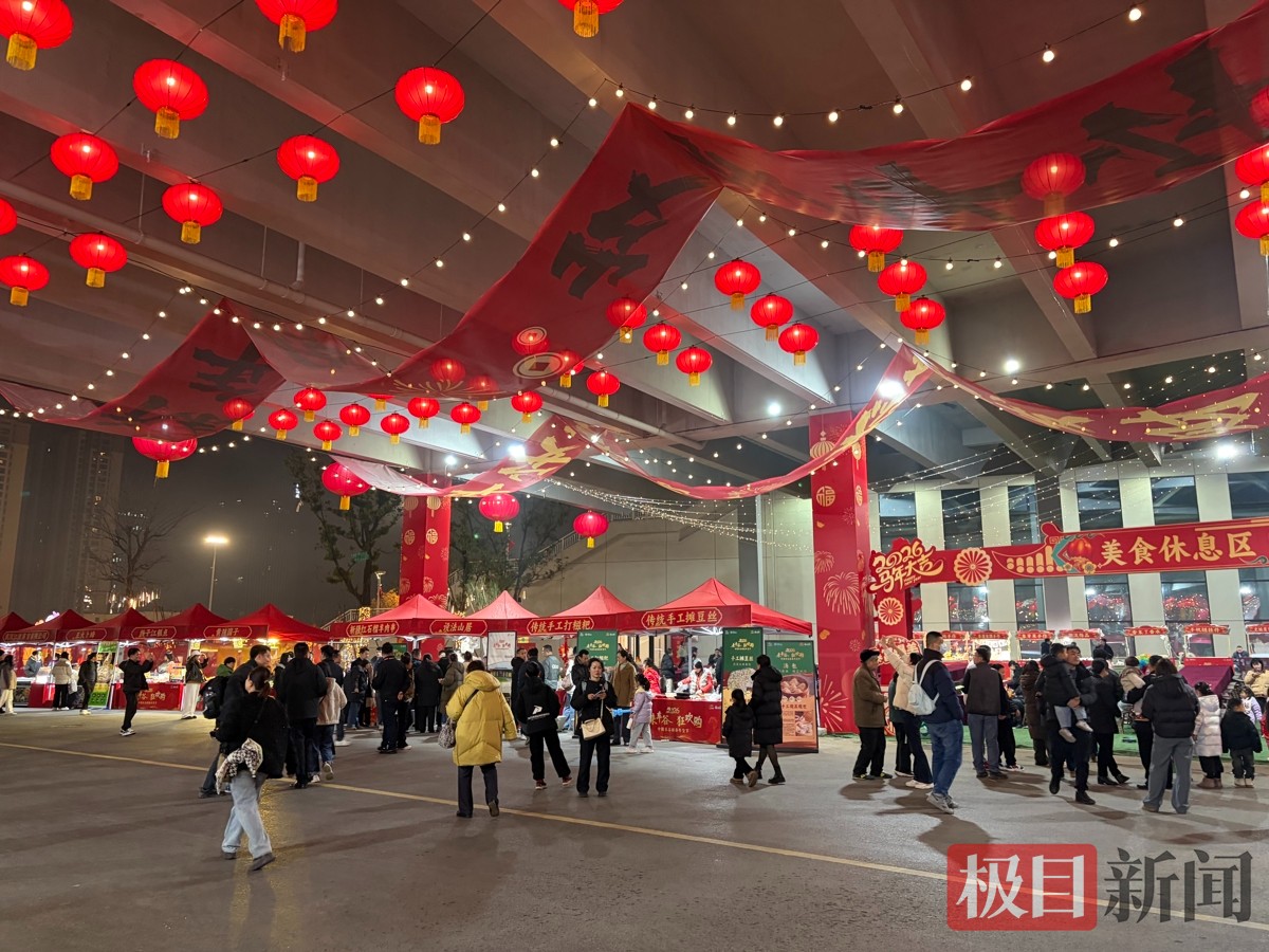 音乐节会场外,2026中国车谷新春年货节同样热闹。记者在音乐会场外看到,市民们在糖葫芦、手工打糍粑、烤生蚝等多个摊位品尝体验,岚图、猛士等多款“车谷造”汽车吸引不少市民围观咨询。