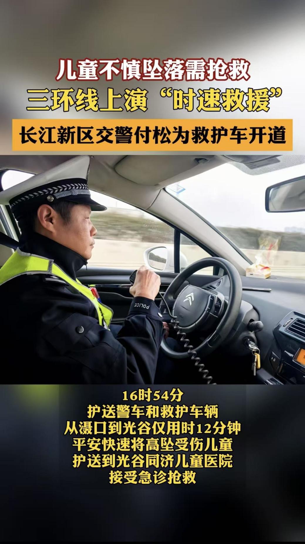 接到这通紧急呼叫,大队迅速响应,一边对接救护车,一边指派民警付松和辅警饶耀赶往滠口高速出口提前等候,亮灯鸣笛,开道护航。载着患儿的救护车仅用12分钟,便在警车护送下穿越三环线车流,安全抵达医院,为救治赢得了宝贵时间。
