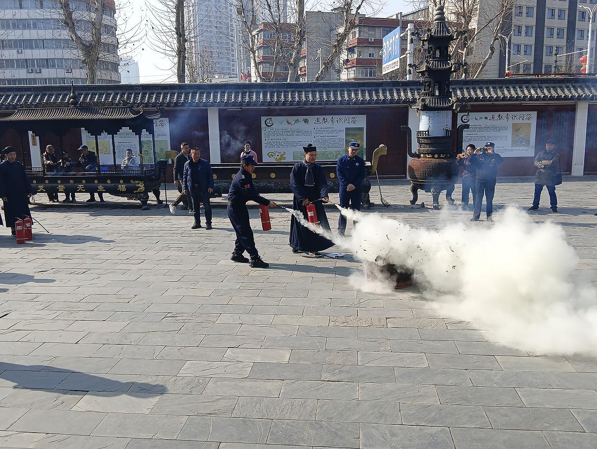 春节将至,为筑牢辖区重点公共场所消防安全防线,切实加强长春观消防安全管理,规范突发事件应急处置流程,提升观内安全防范和应急处置能力,2月12日上午,武汉市武昌区中南路街道舒家街社区联合中南路街道派出所、武昌区武珞路救援站,在长春观内开展节前消防演练培训活动。