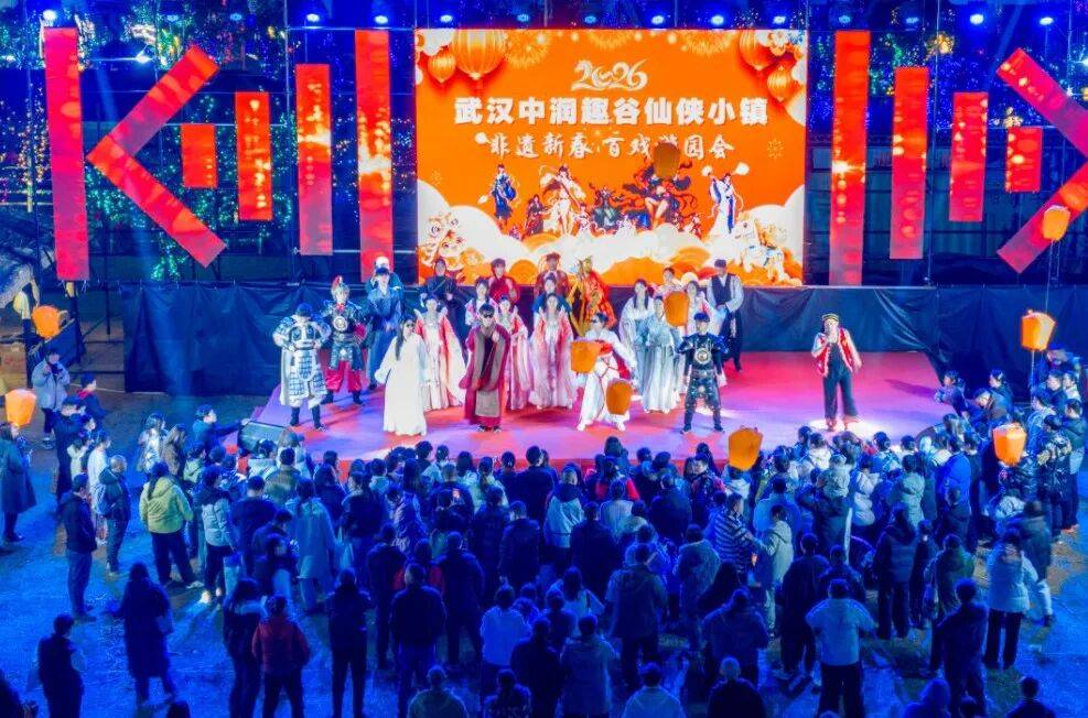湖北日报客户端讯(通讯员兰林坚 姚子怡 陈亮 张鹏)2月11日,位于武汉经开区军山新城的武汉趣谷仙侠小镇“百戏千灯游园会”正式开园。中润趣谷景区化作仙侠幻境,数千游客踏夜而来,赏花灯、看非遗、品国潮、过大年,共赴一场穿越千年的新春之约。