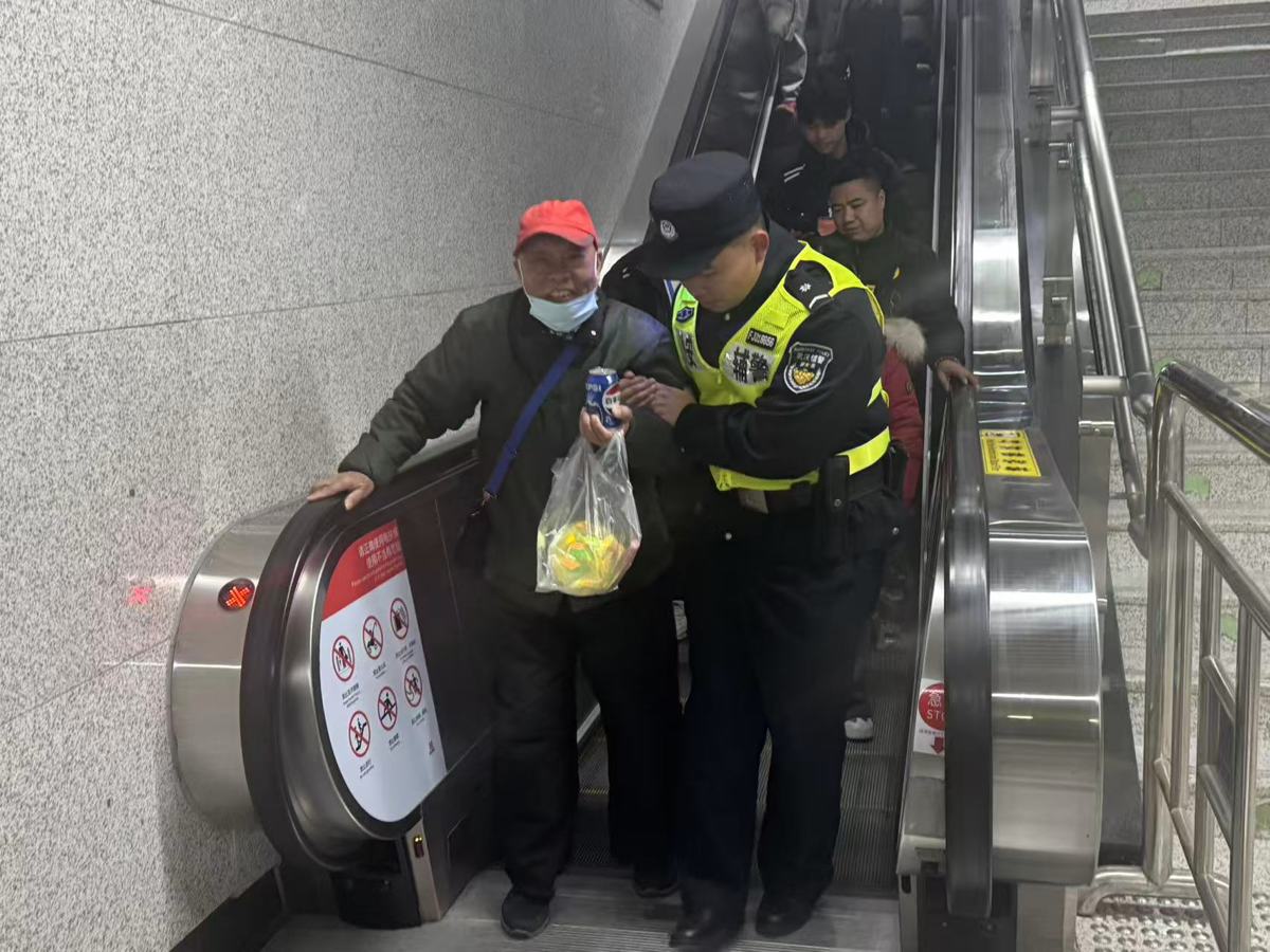 “别急,我们来帮你!”2月18日20时50分,辅警邓宇青、王斌琰在地铁7号线园博园站巡逻时,发现一名爹爹手提大件行李,在搭乘扶梯时遇到困难。3人见状,主动上前提供帮助,其中两人搀扶老人进站,一人帮助拿行李,一路护送其安全乘车离开。