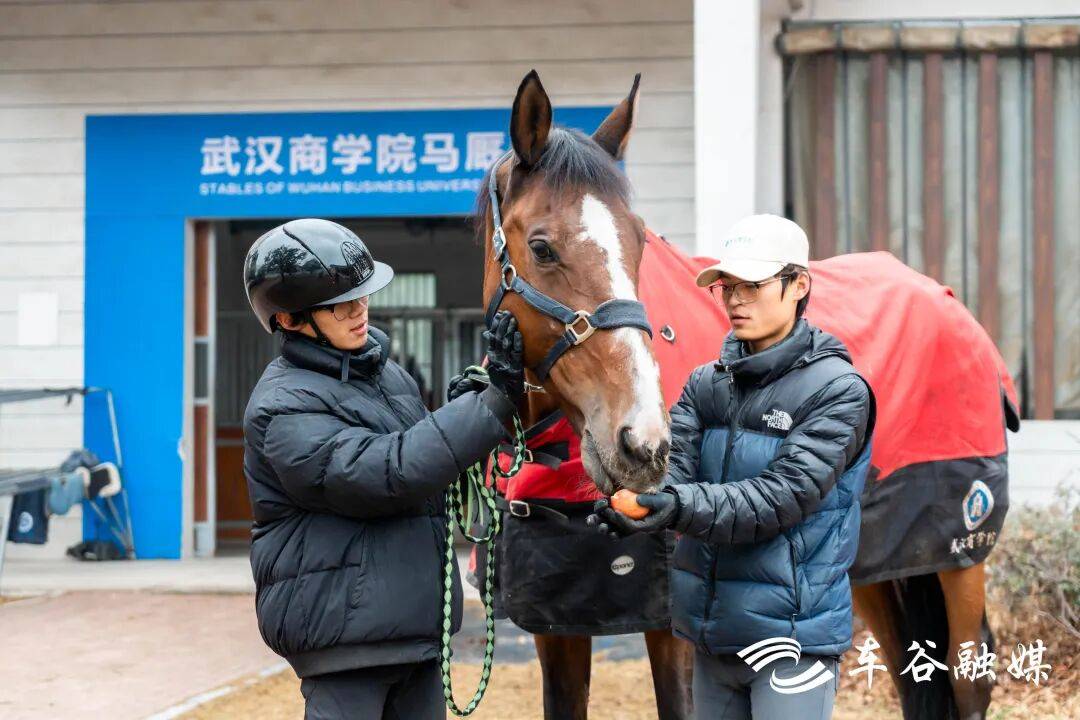 今年春节,武汉商学院国际马术学院有17名学生与10名教师留校,共同照料63匹马匹。走进马房,淡淡草料香扑面而来,从温血马、纯血马到国产马,每一匹都拥有专属“名片”,记录着姓名、年龄、性格等。“奶酪”来校三年多了,还生下了小马“奶糖”。“‘奶糖’才两岁半,年纪最小,也最调皮,大家都宠它。”留校教师朱梦月笑着说。