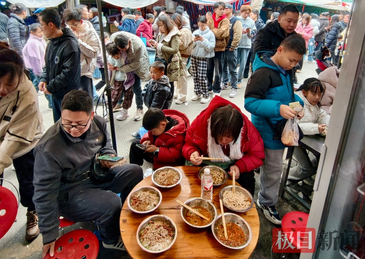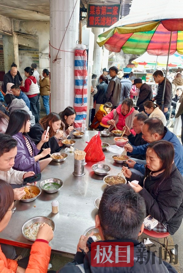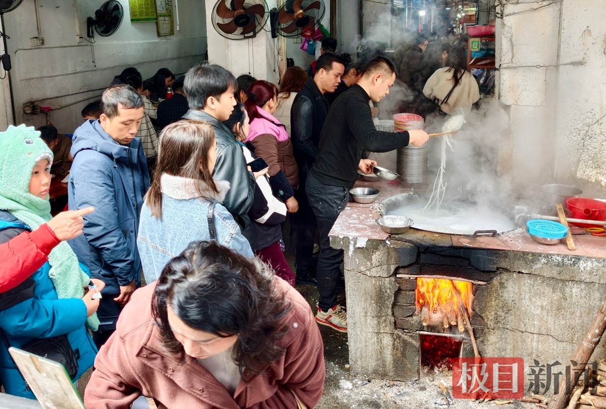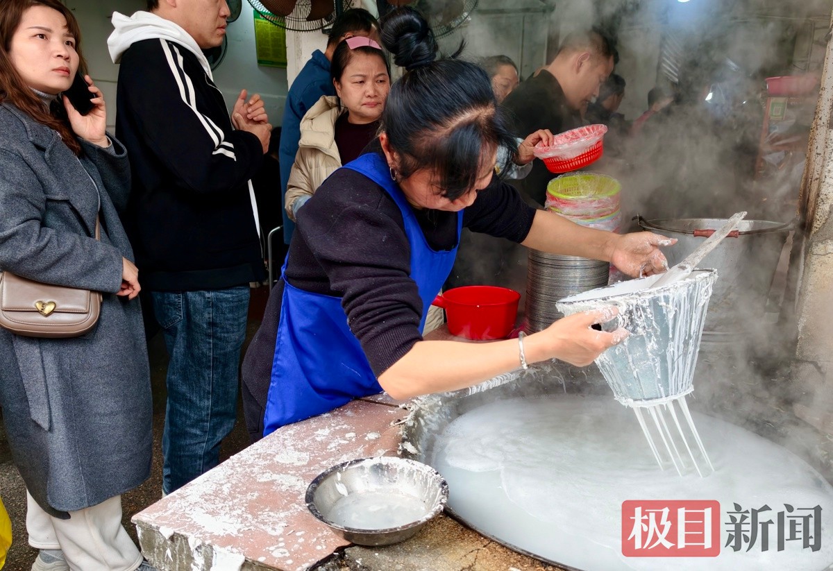 春节假期,各家滤粉店生意火爆,店门口队伍蜿蜒不断。队伍中,既有返乡过年的本地人,也有专程前来打卡的外地游客。来自湖南的聂先生第一次品尝滤粉,他说“跟湖南米粉相比各有特色,滤粉鲜香爽滑,让人印象深刻”。