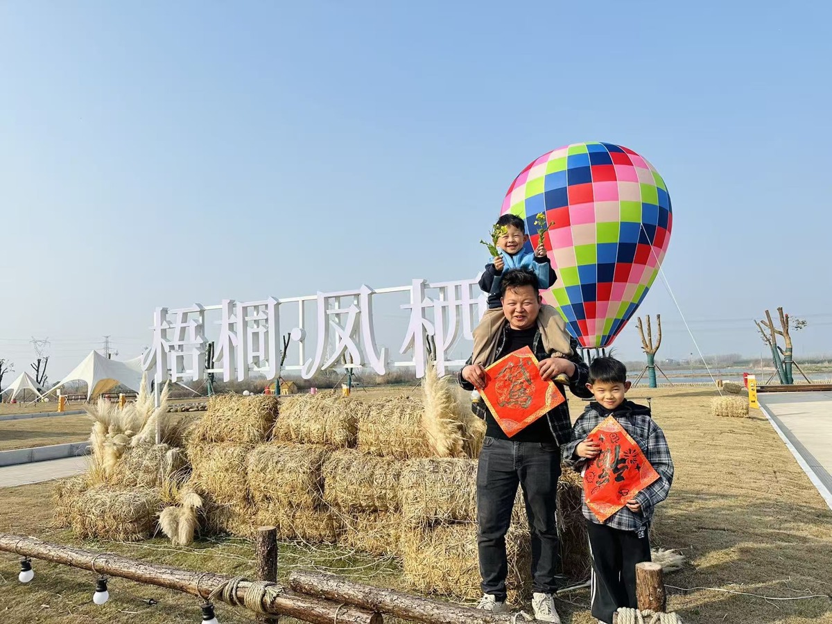 经工作人员引导,张先生一家前往“梧桐·凤栖”房车营地的农场体验区,参与翻土、播种等农事互动,并在打卡牌上留下寄语后离开。