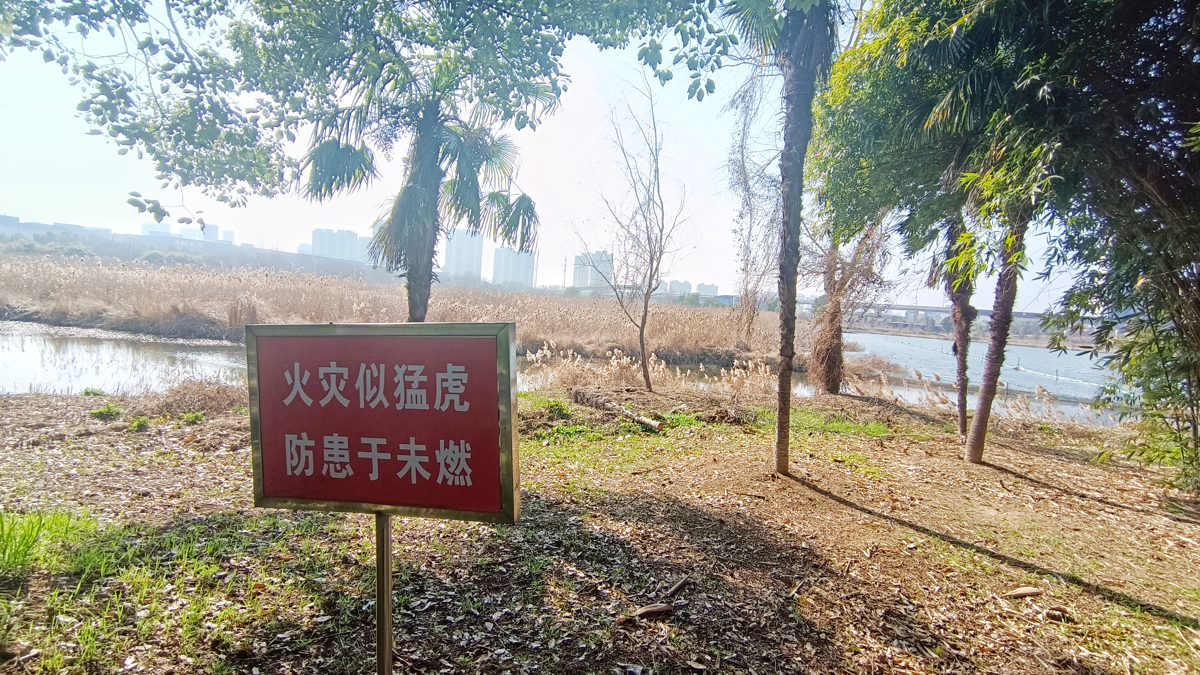 在张毕湖公园内的芦苇丛旁,检查人员要求园区管理方在增设醒目禁火标识的同时,要加强节日期间禁鞭值守,防止违规燃放烟花爆竹引发火灾;在该公园值班室,检查人员认真查看了园区智慧监控系统、灭火器配置和安全值班台账,并考察了值班人员操作灭火器材的规范流程的熟练程度。