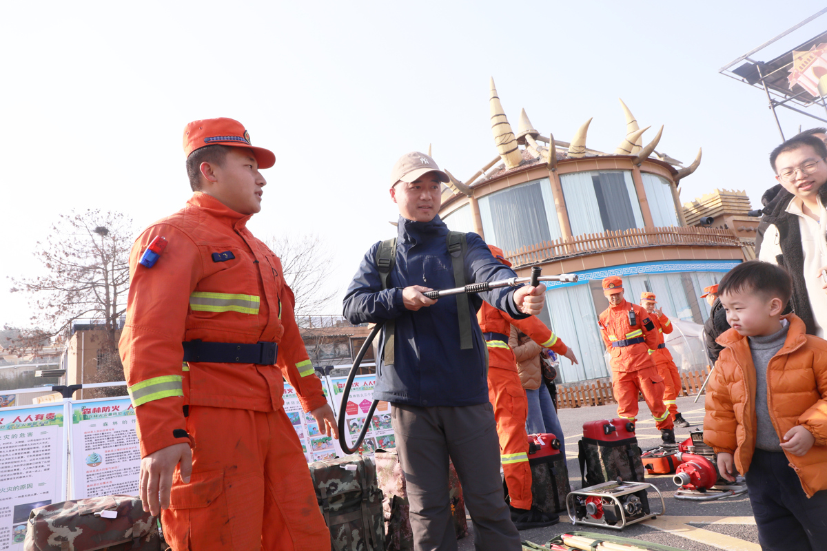 指战员们在景区重点区域定点执勤,向来往游客普及森林草原防火知识,讲解安全注意事项,引导大家文明出游、杜绝野外用火。现场展示各类消防装备器材,邀请游客近距离观摩、体验,让大家直观了解救援设备功能与防火技能。同时,执勤队伍分组开展不间断巡护,对草地、人流密集区进行全面排查,及时消除火险隐患,以严整姿态、扎实举措筑牢节日防火屏障,用坚守与担当守护景区安宁,让游客在欢乐祥和中欢度新春。