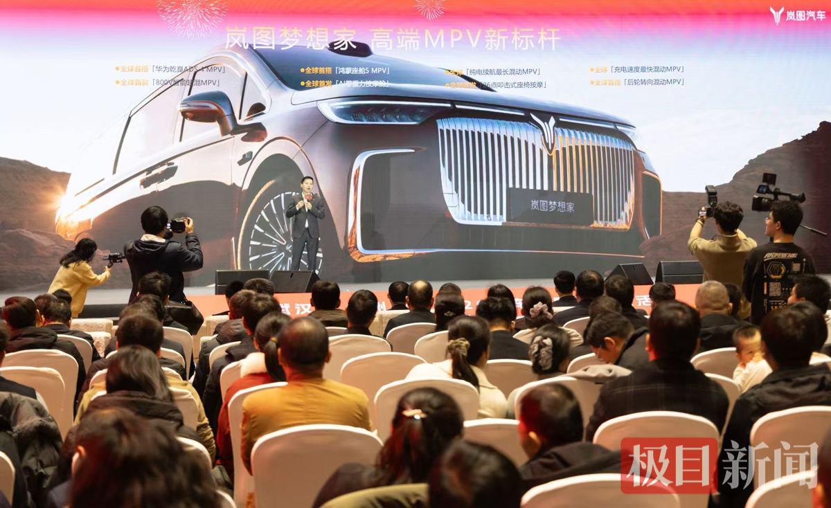 在一辆岚图泰山汽车前,市民刘女士正在车内体验,称赞该车空间大、车机交互很智能。当刘女士询问该车充电性能时,工作人员介绍,岚图泰山配合5C超级快充,12分钟即可从20%充至80%。