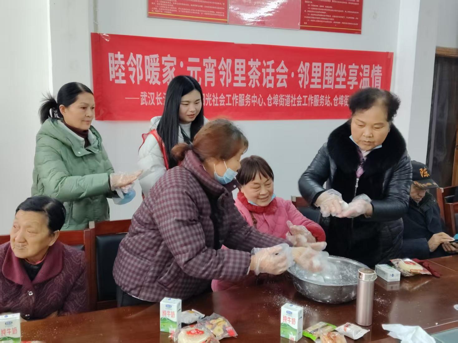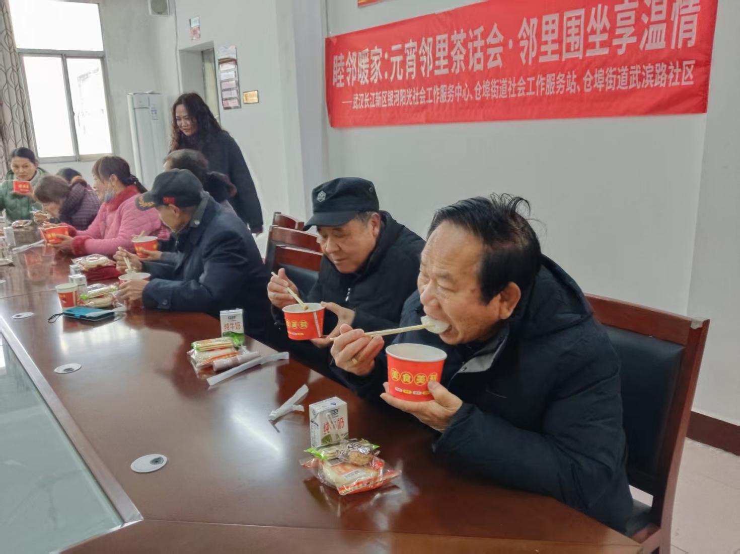 为弘扬中华优秀传统文化,营造团圆和谐的节日氛围,增进邻里情谊,3月2日,武汉长江新区武滨路社区联合社区老年人服务中心,举办“元宵邻里茶话会 邻里围坐享温情”主题活动,邀请辖区独居老人共度元宵佳节,以汤圆寄情、以灯谜传趣,共赴一场温馨团圆之约。