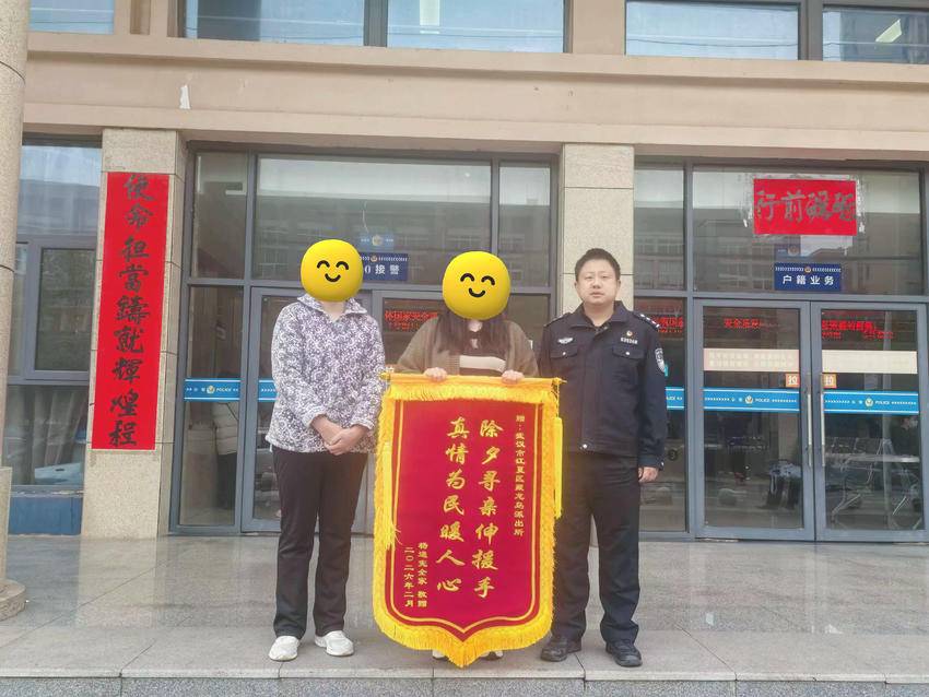 3月3日上午,武汉市公安局江夏区分局藏龙岛派出所民警杨少佳收到一面写有“除夕寻亲伸暖手真情为民暖人心”的锦旗。这面锦旗被杨女士亲手交到民警杨少佳手中,她激动地说:“真的太谢谢你们了,要不是你们除夕夜的连夜寻找,我们家这个年都不知道怎么过!”