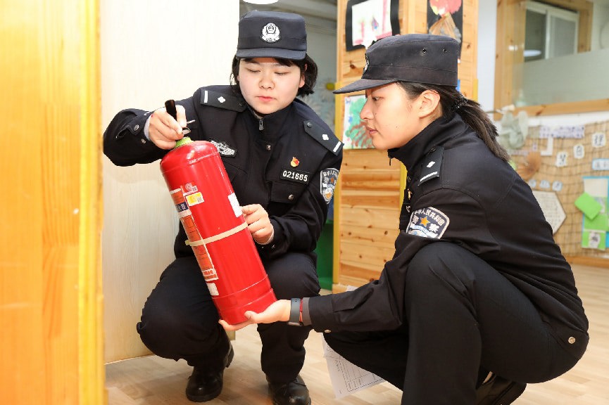 “监控要一个点位一个点位对着看,被树叶挡了、画面糊了,都得记下来让校方马上改,不能留一点盲区。”吴新宇拿着手电筒,一边照向墙角的消防柜,一边跟身边的徒弟念叨,“你看这个灭火器,咱们要核对压力表,指针在绿区才符合安全规范。”