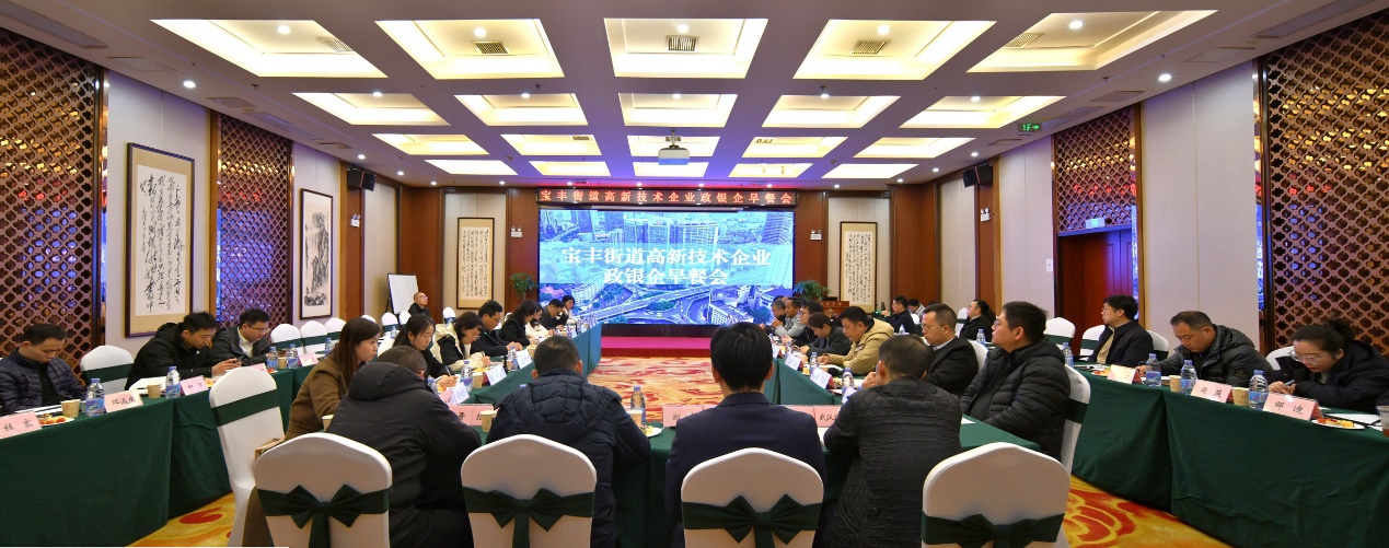 为贯彻落实全区科技创新和产业创新融合发展大会精神,围绕全区“一廊三城三带”战略布局,宝丰街道积极融入滨江数创大走廊,全力打造同济健康城,协同推进环同济、环海工大学创新发展带,捧出了一份别出心裁的“早餐组合”。区商务局、经科局、金融办、人才办做“主厨”,多家金融机构当“帮手”,围坐一桌,为辖区来自数智基建、管线探测、新材料、数智医疗、智能制造、军民融合等领域的9家高新技术企业面对面“配餐”。在轻松的氛围中解决了企业发展的燃眉之急,真正实现了服务“零距离”,助力企业跑好“十五五”开局第一棒。