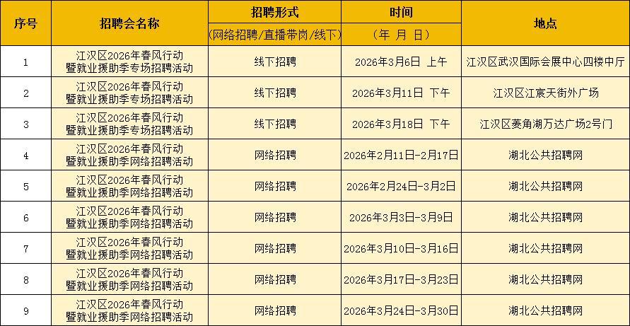 江汉区人力资源局工作人员介绍,为持续发力稳就业、促民生,江汉区后续将持续加码就业服务,分别于3月11日、18日在江宸天街、菱角湖万达广场举办专场招聘活动,不断拓宽就业渠道、优化就业服务。