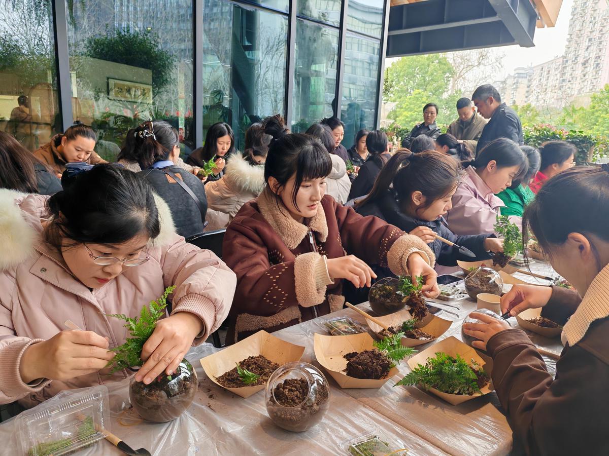 故事分享会后,大家走进水杉科普馆,通过光影投射、图文展示、影像播放、AI互动等形式,沉浸式体验湿地动植物和谐共生的美景,深入了解水杉的生长习性、生态价值,拓宽视野、陶冶情操。接着,女警们移步绿色驿站艺术馆,在专业老师的讲解下,大家认真学习绿植养护知识,了解常见的盆栽培育技巧,在绿意盎然中感受自然之美,舒缓身心。民警赵钰君开心地表示:“我对养花很感兴趣,但总是养不好,今天学到了很多养花的知识,真是太实用了!”