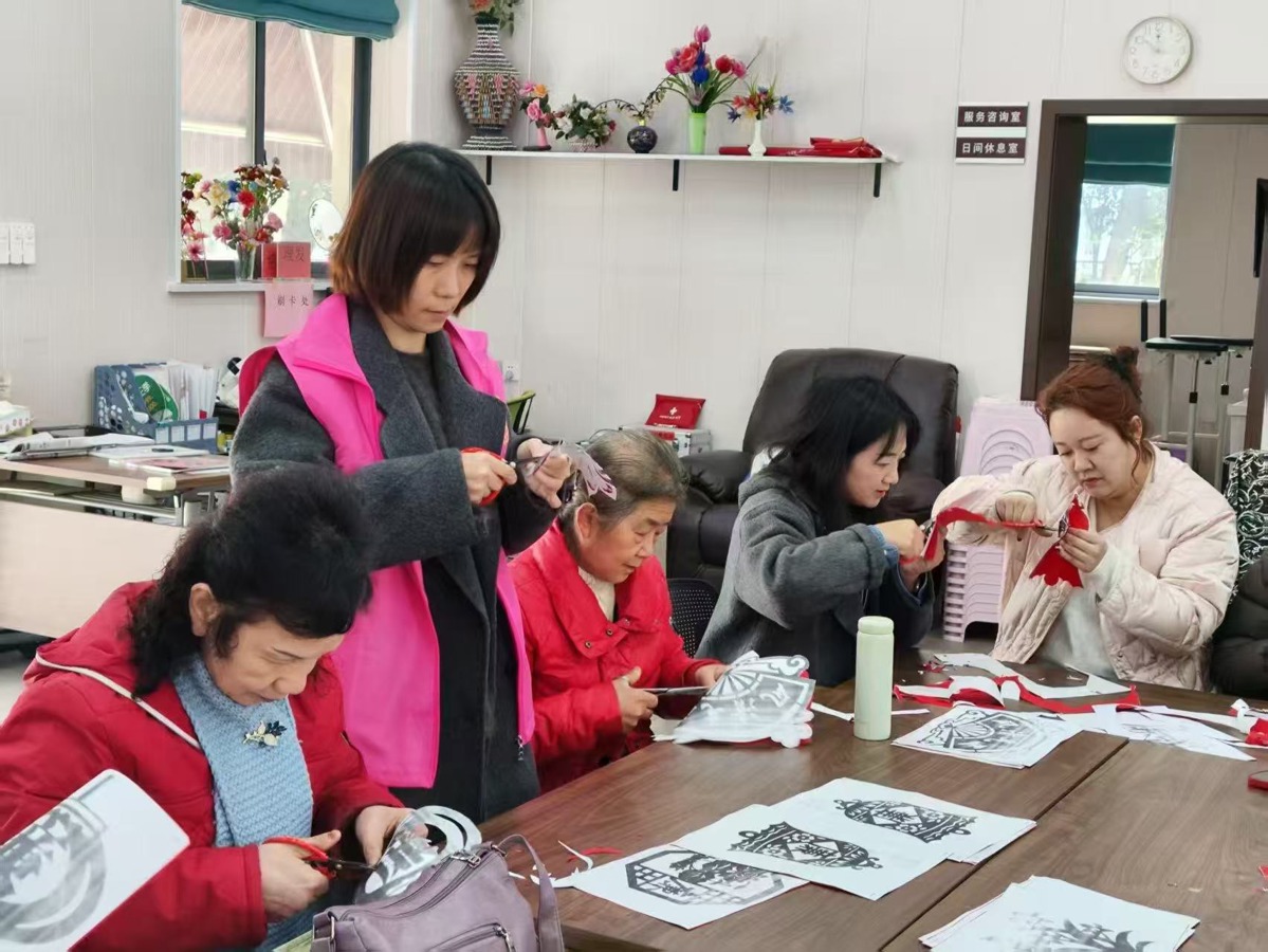 第二社区开展“巾帼心向党剪纸颂清风”主题活动,将廉洁文化与传统剪纸艺术相结合。在剪纸老师指导下,社区妇女与共建单位党员共同创作莲花、“廉”字等主题作品,以非遗形式传递清廉理念。
