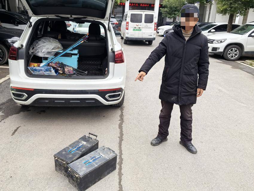 功夫不负有心人,结合视频轨迹与走访线索,民警很快锁定违法行为人徐某,并摸清其藏匿在辖区一处老旧民房内。收网行动即刻展开,民警胡常青、程堉铨和薛纪楷火速出击,在徐某家中将其当场抓获,并在其车后备箱查获尚未来得及变卖的电池。