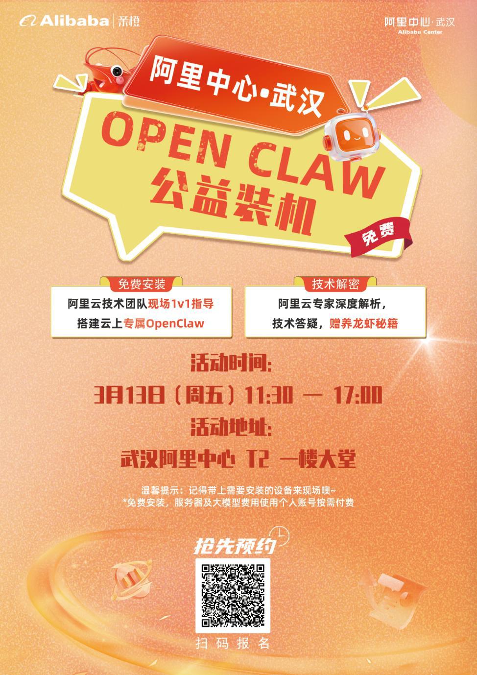 想让AI“龙虾”机器人在自己的设备上跑起来吗?3月13日,一场免费的OpenClaw公益装机活动,将在武汉阿里中心举行,技术团队将现场手把手指导市民搭建云上专属OpenClaw,解锁智能硬件新玩法,并赠送“养虾秘籍”。
